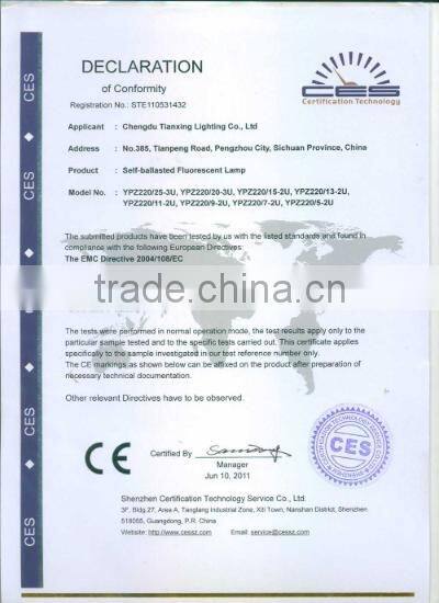 Chengdu Everstar Lighting Co., Ltd, which is holding subsidiary of Chengdu Tianxing Lighting Co., Ltd is in charge of production, research and sale for FSL(Energy saving lamp) products. The company is perfecting FSL series products has the production capacity of 5 million output, which is a strong foundation for upgrading of products.
